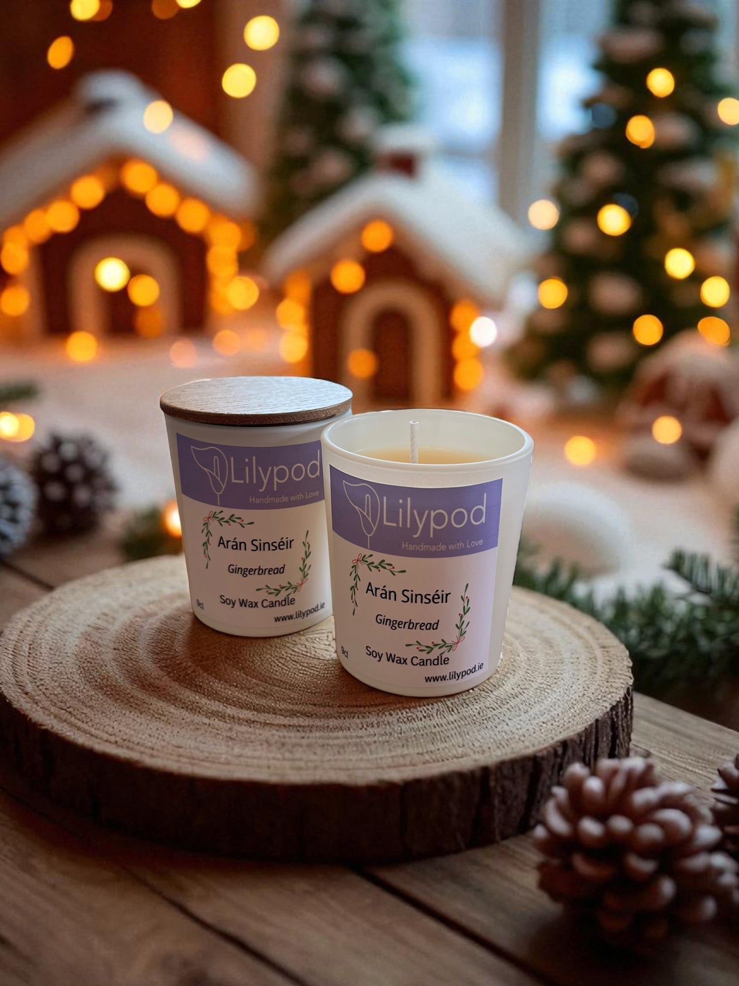 Fill your home with the sweet, nostalgic scent of Christmas baking. Our Arán Sinséir candle is hand-poured with natural soy wax and blended with the rich, warming fragrance of freshly baked gingerbread.